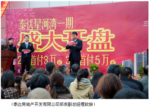 上午9點(diǎn)18分泰達(dá)星河灣首批房源開盤典禮正式開始,泰達(dá)房地產(chǎn)開發(fā)有限公司的鄭京副總經(jīng)理發(fā)表了熱情洋溢的開盤致辭,江蘇泰達(dá)控股集團(tuán)董事長蔣躍東先生和江蘇泰達(dá)房地產(chǎn)開發(fā)有限公司總經(jīng)理徐興根先生上臺啟動了象征項(xiàng)目啟幕的水晶球,伴隨著一個(gè)個(gè)精彩的表演,客戶邊看節(jié)目邊耐心的等待叫號,在禮儀小姐的帶領(lǐng)下,按號牌順序陸續(xù)進(jìn)入銷售中心選擇房源,截止到中午11點(diǎn)左右,大部分購房客戶都選到了自己中意的房源,整個(gè)上午共成功簽單近百單。