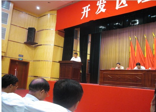 2013年7月27日上午8:30,開發(fā)區(qū)管委會組織區(qū)屬黨政負責人、區(qū)(鎮(zhèn))機關中層以上干部,規(guī)模以上企業(yè)主要負責人、國稅局、地稅局、工商局駐區(qū)機構負責人;供電公司、商業(yè)銀行、各村主要負責人在區(qū)委黨校大禮堂召開經(jīng)濟工作會議。