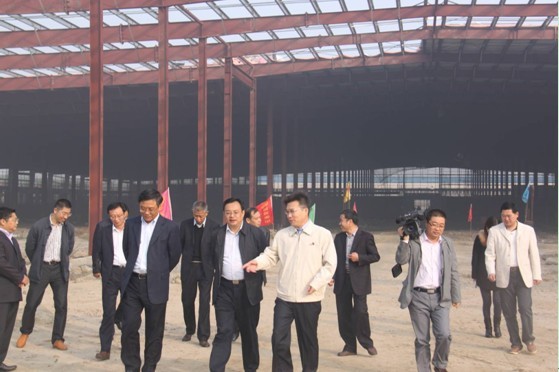 張區(qū)長(zhǎng)(中)、徐常委(左)在蔣董事長(zhǎng)陪同下視察公司二期工程項(xiàng)目