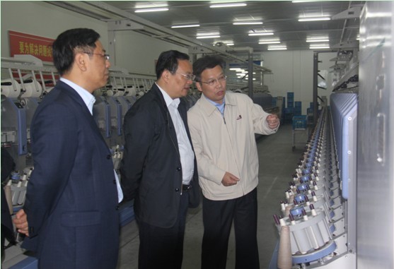 張區(qū)長(zhǎng)(中)、徐常委(左)在蔣董事長(zhǎng)陪同下參觀公司紡一生產(chǎn)車間