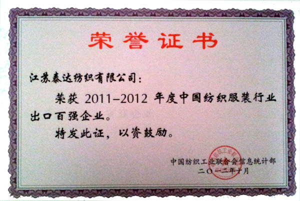 中國紡織出口行業(yè)百強(qiáng)企業(yè)