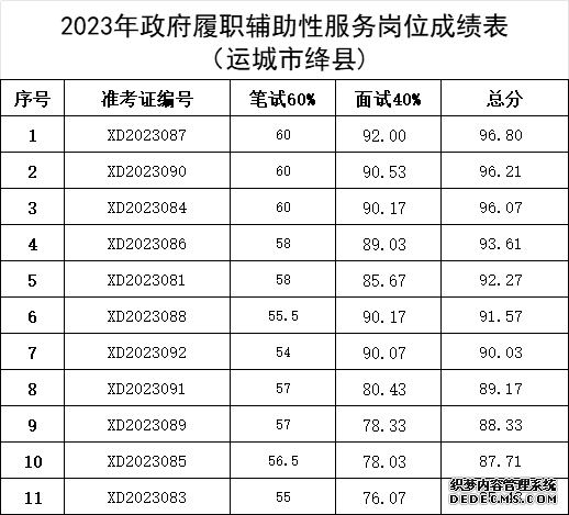 一、運(yùn)城市迅達(dá)人力資源服務(wù)有限公司2023年政府履職管理服務(wù)輔助性崗位考試已如期進(jìn)行,現(xiàn)成績(jī)公示如下: